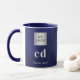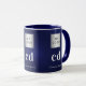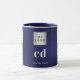 En blå bakgrund. Den blå färg är ojämn. Anpassa och lägg till din logotyp (3), en namn och ett monogram initialer (3). Namn är skrivet i vitt med det moderna blocket brev.