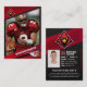Visa upp pridet med det här smutsiga och anpassadet rött och svart fotbollskort. Det här kortet har en fetstilt kardinal logotyp och ett dynamiskt spelarfoto och är säkert utmärkt i alla samlingar. Anpassa kortet med spelarens namn, nummer, position, status och till och med ett anpassningsbar-meddelande. Perfekt för grupppresentationer, högre kvällspresentationer eller bara för att fira din favoritspelare. Gör en påstående med öga-fångstkortet och anpassadet-kortet.