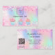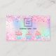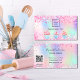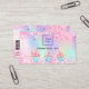 En rosa, lila, mynta gröntens holografisk bakgrund. Dekoreras med damm och muffinsar från glitter. Anpassa och lägg till din logotyp och/eller namn på framsidan. Tillbaka: Mallar för Ditt namn, titel, mobilt nummer, e-post och webbplats adress, ditt eget QR-nummer till webbplatsen eller social-mediekontot.
