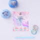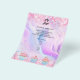 Anpassa och lägg till din logotyp, namn, adress, din text. rosa, lila, blåpasteller holografi, dekorerad med konfetti och muffinsar.