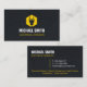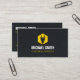 Ett modernt, minimalistiskt och professionell affärskort med en logotyp av en silhuett med en strömkontakt över en sexkantig gult. En struktur-effekt för bakgrunden. Perfekt för elektriker och för dem som tillhandahåller installationstjänster avseende elektriska ledningar och belysningsanordningar. Anpassa din affärsinformation till de vanliga textmallarna.