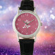 Lägg till din egen logotyp. En trendig magneta, mörkens rosa bakgrund. Perfekt för att marknadsföra ditt företag och ditt varumärke. Vita klocknummer i ansikte.