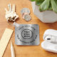 Enkel PR-nyckelkedja för ditt företag eller din organisation på en borstad silver-faux-bakgrund. Lägg till logotyp eller QR-kod och två rader med anpassad text, t.ex. ditt företag namn, slogan, tack eller lämna tomt.