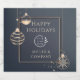 Logotyp Glad helg jul Corporate Modern mousserande vin-etiketter har en gynnsam bakgrund i ro guld som Juldekorationer på mörkens grått. Lägg till personlig och logotyp för dina julklappar, Julfester och mycket annat på torget ram. Redigera bara texten i textrutorna. Designad av ©Evco Helgdagars www.zazzle.com/store/evcoholidays