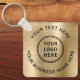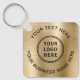 Enkel PR-nyckelkedja för ditt företag eller din organisation på en borstad guld-faux-bakgrund. Lägg till logotyp eller QR-kod och två linjer anpassad text, t.ex. namn, slogan, tack eller lämna tomt.