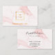 Elegantens minimalistiska rosa marmor-bakgrund. Mall för logotyp och text på framsidan. Golden brev. Tillbaka: Mallar för Ditt namn, din titel, ditt mobila nummer, ditt e-postnummer och din webbplats adress. Grått brev Perfekt för kvinnliga företagare, konsulter, företagsägare. Matchande affärskort finns i vår butik.