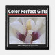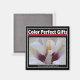 Elegant vit ros på en svart bakgrund, med logotypen Färg Perfekt ger en kvadratmagnet. Den här designen symboliserar renhet, oskuld och nystart, skapar den som ett tänkvärt och vackert tillägg till alla magnetiska yta.