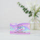 Skapa dina egna dekorativa affärskort för logotyp för små företag med plats för ett mobilt nummer och en webbplats-URL på framsidan och mer kontaktinformation på baksidan. Anpassa teckensnittet stilar för att matcha logotypen. Bakgrunden har en snurrande bild av digitalkonsten i färg... lila, lavender, periwinkle, aqua, blue, mint, grönt och rosa. Anpassa elegantens kalligrafi och det moderna teckensnittet stil eller svart färg i personligen efter behov för att matcha logotypens bild.
