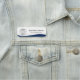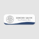 Vita namn bricka med en mörk blått våg gräns längs grund och ditt eget namn och titel. Ladda upp din egen logotyp och skapa namn bricka för ditt företag eller din händelse. Du kan byta typsnitt och färg med designen verktyg.
