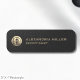 Representera ditt företag med stil genom att förse nya medarbetare och personal med moderna professionella anpassade logotypskyltar i plast med rektangulär form, tillgängliga med ditt val av nål- eller magnetisk fäste. All text i mallen är enkel att anpassa. Elegant rik svart texturerad tryck med borstad guldlogoemblem som kan ersättas med din företagslogotyp med anställdas för- och efternamn, jobbtitel eller anpassad text efter eget val. Ett klassiskt sätt att presentera företagsvarumärke och ett modernt tillägg till den vanliga uniformen för alla företag från småföretag till stora koncerner.
