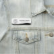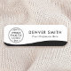 Vita namn bricka med en svart våg gräns längs grund och ditt eget namn och titel. Ladda upp din egen logotyp och skapa namn bricka för ditt företag eller din händelse. Du kan byta typsnitt och färg med designen verktyg.