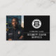 affärskort för säkerhetsskydd för professionell med full anpassade. Den här eleganta, moderna designen visar ett enda foto och är personlig med ditt företag namn, kontaktuppgifter och en skannerbar QR-kod. Perfekt för enskilda personer och företag, inklusive privata säkerhetsföretag, nära skyddschefer, personliga livvakter, händelsesäkerhet med mera. Färg: Svart och vitt. Du kan också ändra bakgrunden till färg med funktionen Redigera med design verktyg. Köp samlingen för mer populära säkerhetsproduktidéer och leveranser för online.