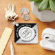 Dubblans sidokedja med anpassningsbarnas logotyp på en vit, rund bakgrund omgiven av cirkulär text på framsidan och QR-kod på baksidan. Svart och lätt grått-övertoningsbakgrund. Ändra typsnitt och teckensnitt färg, flytta och ändra storlek på inslag med verktyg.