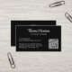 Elegant professionell svart affärskort med ditt namn utställt i ett vitt skript med fet snyggt och din titel och kontaktinformation (t.ex. e-post, telefonnummer, namn och utskick adress) i ren, modern, vit text. Ange en URL-adress adress för att skapa en skannerbar QR-kod som är länkad till webbplatsen, medieprofilerna i social eller någon annan plattform som visar ditt arbete, skapar det enkelt för andra att utforska din expertis. Ladda upp logotypen på baksidan eller lämna tom.