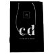 Svart bakgrund och vit text. Anpassa och lägg till logotyp, monogram initialer och namn.