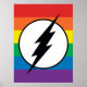 DC-Pride | Blixtens ikoniska logotyp med lagrar av regnbåge färg inuti.