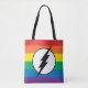 DC-Pride | Blixtens ikoniska logotyp med lagrar av regnbåge färg inuti.