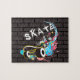 Logotypen för grafitti för tegelstenväggskridskon pussel