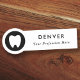 Vit tandläkare namn bricka märkt med en vit tandtandlogotyp. Överför din egen logotyp för att skapa namn bricka för alla affärsverksamheter eller händelser. Anpassade namn och titel/företag namn. Du kan ändra teckensnitt och bakgrund färg med verktyg.