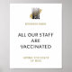 Ställe är detta på framträdande plats, kanske i ditt verksamhets framkant. Dina kunder känner sig tryggare när de vet att dina anställda och personal vaccineras. Detta är lätt att anpassa. Lägg till din logotyp högst upp och skriv ditt företag namn nedan. All text fält kan ändras till kostym efter behov. Kontakta designern om du vill ha hjälp med detta. Det här är på en vit bakgrund med svart text och guld.