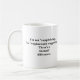 Mugg med SWSG-logotypen på en sida, text på annan: "Mig förmiddag "som inte klagar", I-förmiddag "som föreslår eftertryckligt". Det finns en OBETYDLIG skillnad.",