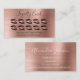 Rosa - Ro Gold Foil Metallic Eyelash Extension Promotional Loyalty Frimärke Card med vit handskriven typografi för monogrammet på baksidan av kortet med affärsuppgifter. Affärskortet Ro Gold Foil Loyalty eller Rewards Eyelash kan anpassas för vilket yrke som helst och innehåller ett redigerbart 10 slår och är gratis på framsidan av förmånskortet Slår. Kontakta designern om du behöver matcha anpassade produkter.
