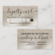 Lägg till dina social-media med ett modernt, snyggt lojalitetskort för affärskort för hårsmakeup och konstnärer med glitter elfenbensombre-guldet och en modern kalligraftypografi.