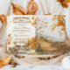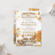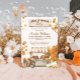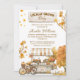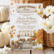 Bjud in nära och kära till en mysig firande med denna charmiga baby shower inbjudan. Denna rustika design har en förtjusande akvarellillustration av en bondemarknadsstånd fylld med pumpor och höstdekor. Med en vintagecykel och fallande löv är det det perfekta valet för en hösttematiserad eller skördeinspirerad baby shower, som skapar en varm och välkomnande atmosfär för en ny liten en.