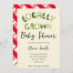 Färga frukter och äggceller dekorerar den här lokalt odlade inbjudan till babydusch. Perfekt för en jordbrukares marknads- eller jordbrukstemadel. Baksidan har en picknick och framsidan har sallat, okra, chard, avokado, gult vattenmelon, grönt bönor, radicchio, vetegräs och napakål.