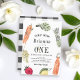 Denna söta "lokalt odlade" jordbrukares gender-neutralt-marknad 1:a födelsedag har en vit bakgrund med grönsaker och frukt i vattenfärg. Baksidan har en vit bakgrund med svart buffel/gingham-kontroll av mönster. Anpassa efter dina behov. Du hittar matchande produkter i min butik.