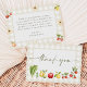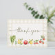Gratulerar hjärtligt till den här lokalt växande Rustic Farmers Market Baby Shower, tack vare ditt kort. Med vattenfärgsfrukter, äggstockar och mjuka gingham-accenter ger den här charmerande designen ett varmt lantbruk ny beröring till dina uppskattningsanteckningar. Ett perfekt sätt att tacka nära och kära samtidigt som du behåller det mysiga jordbrukshuset stil i ditt babyduschtema.