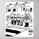 Vid en skola som korsar en Lollipop Man användor hans lollipop för att göra en barriär mot behållans skolbarn på trottoaren. Tecknad som visar en lollipop-man, korsskydd, övergångsledare eller skolvägspatruller