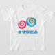 Två läppar i blått och rosa som korsar varandra. Texten lyder: Sucka.