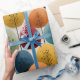 Round colorful trees in teal, red, orange, and gold on cream. Retro illustrated style that hits that mid-century modern sweet spot.