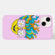 Lägg till en stänk med levande roligt till stil med den här lekande designen som har en glad leende smilande karaktär med rosa av funky med blommor i . Tecknets vågigt, färgstarka hår tillför en dynamisk energispricka, mot en livlig rosa bakgrund. Gör din dag ljusare eller ge den till någon som kärlek är unik och glad.