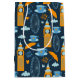 Fet, blå utskrift inspirerad av en regnig dag i London