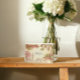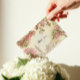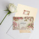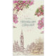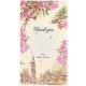 Romantiskt London-vigselkort med tackmeddelande med en blomsterrik akvarell-horisont, tryckt på premium-linnepapper och helt redigerbart online.