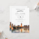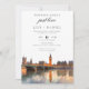 Denna eleganta 'inget fancy bara kärlek' London-skyline akvarell bröllopsinbjudan kan anpassas med din information i chic typografi. Designad av Thisisnotme