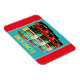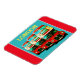 Fridge magnet med vågrät design som visar ett foto som är digitalt behandlat av tidigare stil i London buss, som är tre gånger i rött och teal. En underbar souvenir från London som ska ta hem eller lägga sig i köket.
