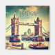 En konstnärlig bild av Torn Bridge i London i England, som omfattar Thames-floden. Scenen har båtar, ett tydligt himmel och sjudande stadsmiljöer, som visar upp det historiska landmärket med en mjuk, varm palett i färg i ett klassiskt konstnärligt stil.