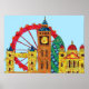 London icon buildings artwork in mozaic style. Done with watercolor and drawing pen.