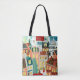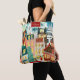 En söt London stadsillustration med shopping människor och stadshus med julgranar och den röda bussen. Originalkonst av Caroline Bonne Müller