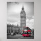 En poster av stor ben och en iconic red dubbla decker buss i London England.