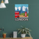 London Art Print – Retro Travel Poster, Red Bus & Phone Box, Wall Decor