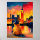 London Teddy Beanie Sunset Thames Reflection Poster