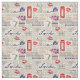 London ett themed seamless mönster som inspireras av nyheterna, skyler över brister. "Texten" är faktiskt grå pricker. Där är bakgrund en grå beige färg. I mönster finns det röda mobila bås, blåttlöv, markerar den röda kyssen, "skrivar London" som är skriftlig i blått, stilsorten, "skrivar tea" som är skriftlig i grått, stilsorten, grånar löv, gråa vintagestilresväskor, och grått skissar lika tekoppar med ånga som är kommande upp från dem. Det finns också den fackliga jacken i färg.