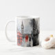 Sitt din favoritdryck i eleganten, vit keramisk mugg med svartvit London cityscape, den ikoniska röda buss och Big Ben. En perfekt till London älskare.