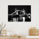 London i Night Poster med berömd London City Landmark - Torn Bridge på natten. Svartvitt foto med ljus från bron som reflekterar i Thames. Art Photography by work4dröm.