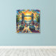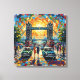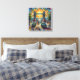 Step into a dream of London where iconic grandeur meets vibrant energy in this extraordinary impressionist celebration of Britain's most beloved landmark. Tower Bridge stands majestically against a breathtaking sky ablaze with swirling golds, oranges, and rainbow hues that seem to spiral with infinite emotion and light. Vintage London taxis in classic red paint the street in bold accents, while elegant figures in period clothing—women in jewel-toned dresses, men in tailored suits—stroll gracefully through this magical urban tableau. Ivy-draped lampposts frame the scene on both sides, their verdant foliage creating natural sentinels of timeless charm, while the Thames glistens beneath in shades of blue and green. The artist's passionate, textured brushwork brings explosive energy to every element: thick, confident strokes create a sky that pulses with life, vintage automobiles gleam with character, and the cobblestone street becomes a symphony of color and movement. Perfect for those who adore London's architectural heritage, vintage British aesthetics, mid-century design, and art that captures the soul of iconic cities, this stretched canvas transforms any space into a romantic portal to London's most enchanting era.