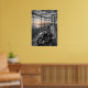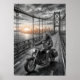 Lone Biker Crosses Suspension Bridge City Skyline Poster